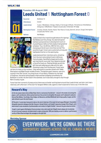 Our highest value package — Select one of the 42 matches played by Leeds United in the 1991/92 League Championship season and receive: